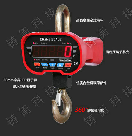 抗偏載3噸電子吊秤,手持顯示器吊鉤秤 我們公司銷售的吊秤在選擇電子吊秤的時候,應根據(jù)本單位的實際需要,參考廠家提供的產品樣本,從產品的計量性能、可靠性、通用互換性、可維修性和實用性幾個方面加以考慮,有特殊要求的,如防爆、防磁、高溫、絕緣等,要在定貨時加以說明,歡迎想購買這款吊秤的客戶請點擊這里致電我們進行購買!
